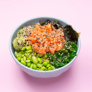 Base a scelta / Salmone / Avocado / Alga nori / Alga wakame / Edamame / Salsa di soia / sesamo