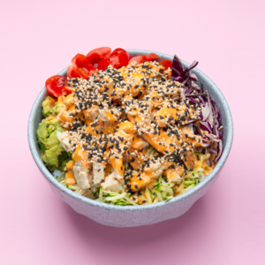 Base a scelta / Pollo / Avocado / Zucchine alla julienne / Cavolo viola / Pomodorini / Spicy mayo / sesamo