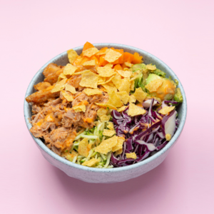 Base a scelta / Pulled pork / Pollo teriyaki / Avocado / Cavolo viola / Patate dolci / Zucchine alla julienne / Spicy Mayo / Nachos